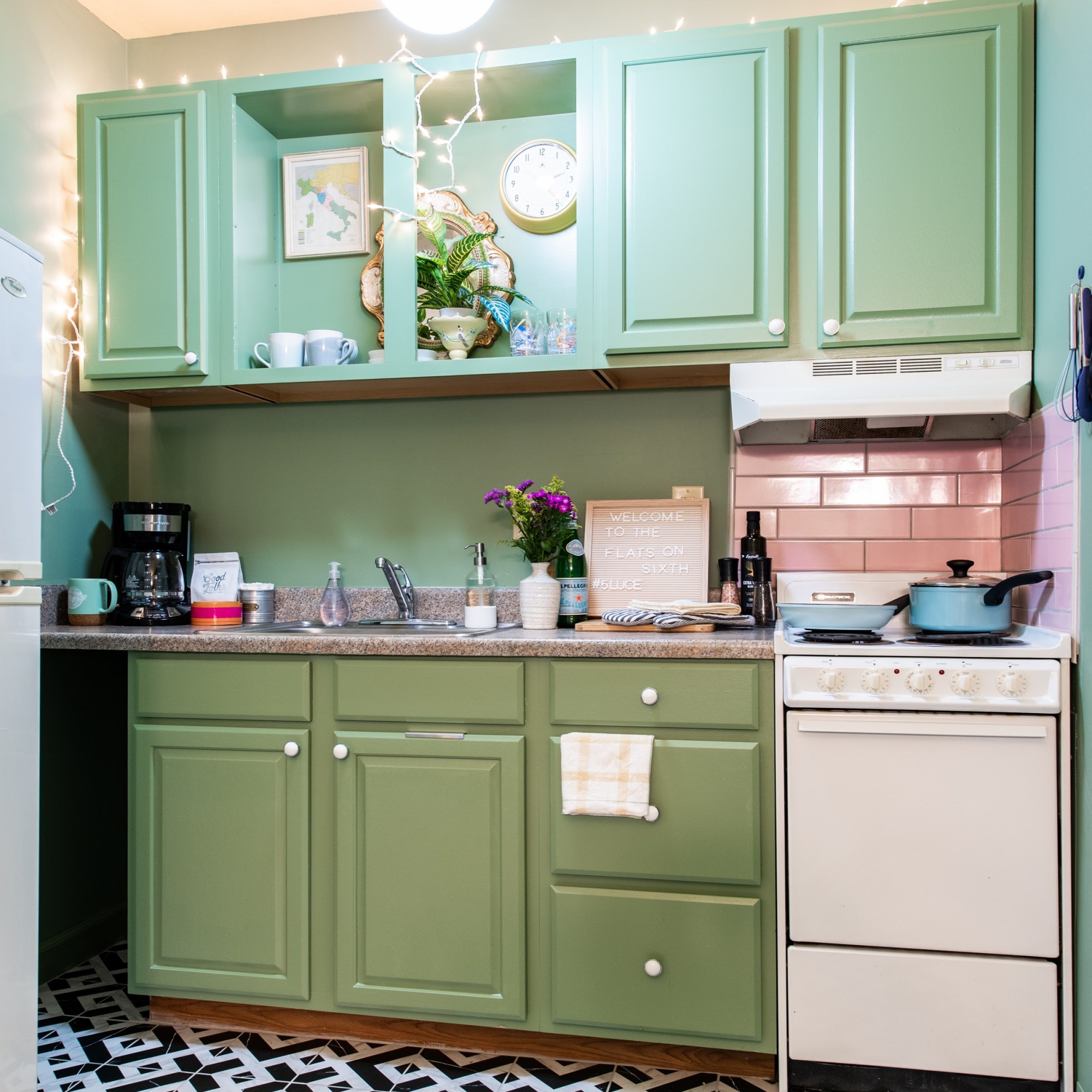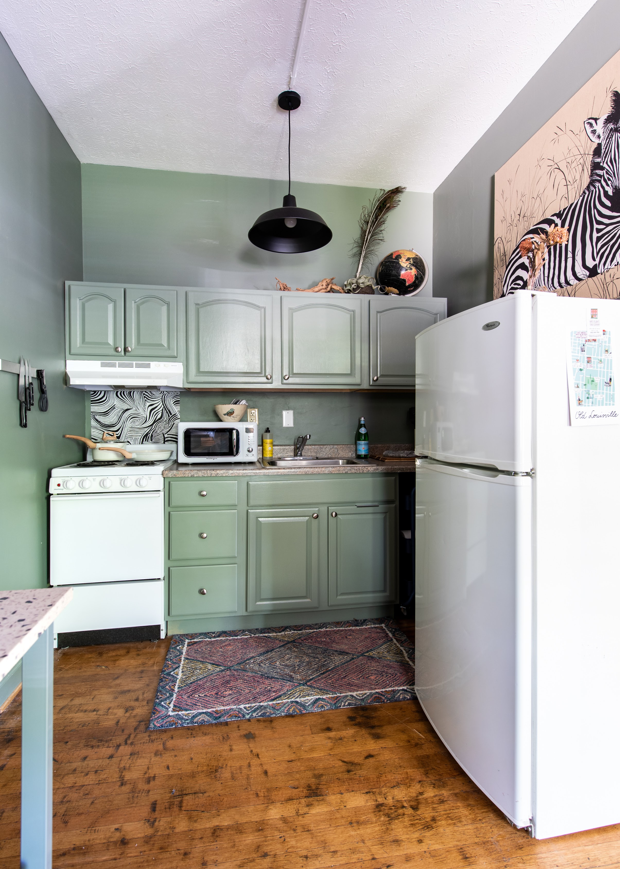 Each apartment was renovated and furnished with travelers in mind. Check out our design features on the Before & After of some of the flats! In the kitchens a teeny stove and scaled-down fridge are ready for your culinary adventures — or we can share the best places in Louisville to eat; your host has covered the dining and drinks scene in Louisville for 10+ years.